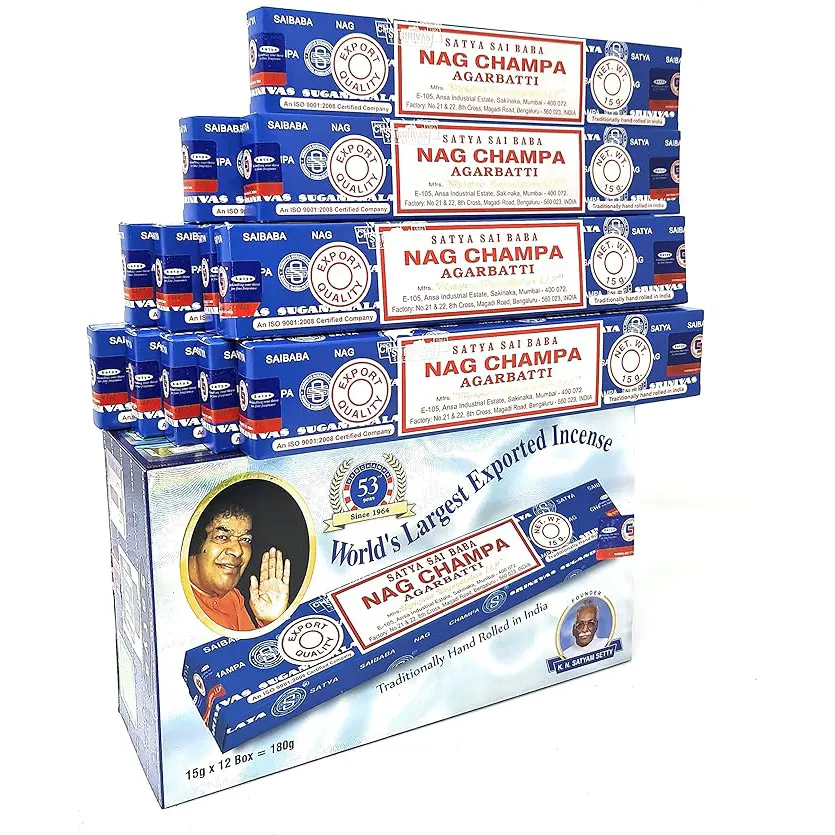 El incienso Nag Champa es el incienso más popular del mundo. La base de este incienso esencial es el sándalo, al cuál se le agrega una variedad de aceites de flores, incluyendo la flor del árbol sagrado Champac. El incienso Nag Champa es ideal para la meditación, la oración o, simplemente, para relajarse en casa.