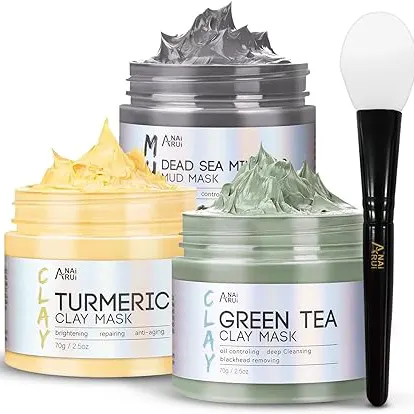 - MASCARILLA FACIAL SPA — Terapia facial para todo tipo de pieles. Mascarilla de arcilla y cúrcuma, mascarilla de arcilla y té verde y mascarilla de barro del Mar Muerto, set 3 en 1. Las mascarillas contienen niacinamide y ácido hialurónico, limpian profundamente e hidratan intensamente la piel, dejándola suave, limpia, fresca y bien tersa después de su uso. Perfecto para el cuidado del rostro con fangos termales 3 veces por semana.